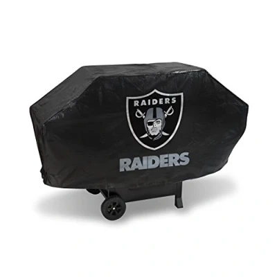 Rico Industries NFL Las Vegas Raiders Black Deluxe Grill Cover Vinyl 68' Wide/Heavy Duty/Velcro Staps