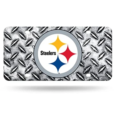 Rico Industries NFL Pittsburgh Steelers Diamond Plate Metal Auto Tag 8.5" x 11" Great for Truck/Car/SUV
