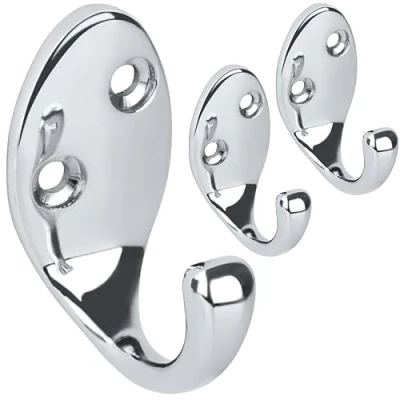 RICOO Modern Coat Hooks, MH014 S3, Set of 3 Wall Mounted Rack in Sleek Silver Premium Zinc Alloy Clothes Hooks for Wall, Durable Hangers 2.2x4.2x5 cm