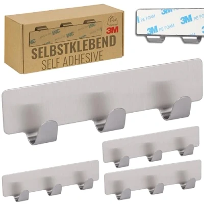 STURDY and ELEGANT DESIGN: Made of high-quality stainless steel, our adhesive hooks present a modern silver finish, ensuring durability and style in one. OPTIMAL FOR BATHROOM: Our bathroom hooks are waterproof and rust-resistant, ideal for hanging towels, robes, and other essentials, keeping your bathroom organized and clutter-free. MULTI-PURPOSE UTILITY: From bathroom towel hooks to kitchen utensils, coat hooks or key holders, our model caters to all. Its strong adhesive backing ensures items stay in place. EASY INSTALLATION: Say goodbye to drills! Our stick on hooks heavy duty design allows for a hassle-free setup on any smooth surface. Just peel, stick, and you're set! PREFECT FOR ANY ROOM: Ideal for every space in the home or office, including the kitchen, bathroom, and more., Weight: 0.07936641432 Pounds, Manufacturer: E.N.Z. Engineering GmbH