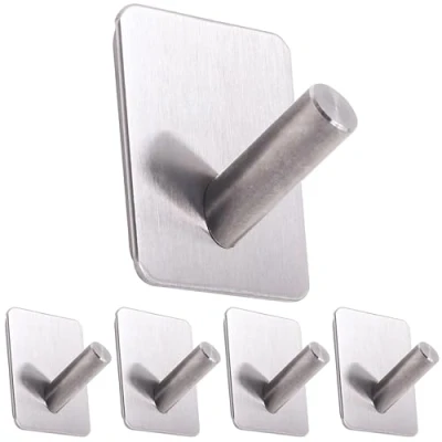 RICOO Self Adhesive Hooks: MH021 5 Premium Bathroom Hooks for Hanging Towels, Robes and More, Wall Hooks, Sticky Back Towel Set of Stainless Steel