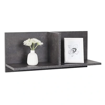 RICOO WM013 BG Wall Shelf, 70 x 30 22 cm, Grey Concrete Look, Wooden Chipboard, Hanging Bookcase, Picture Photo Kitchen Board, Cube