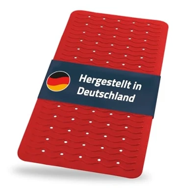 Fixation due to strong hold suction cups on the bottom side TÜV Rheinland tested: free of harmful substances and strong grip This shower mat is made in Germany and free of PVC After every use, clean with clear water