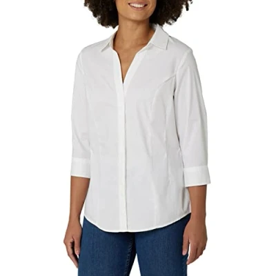 Riders by Lee Indigo Women's Easy Care ¾ Sleeve Woven Shirt Arctic White