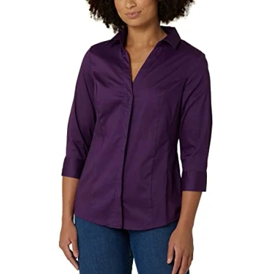 Riders by Lee Indigo Women's Easy Care ¾ Sleeve Woven Shirt, Purple Pennant, X Large