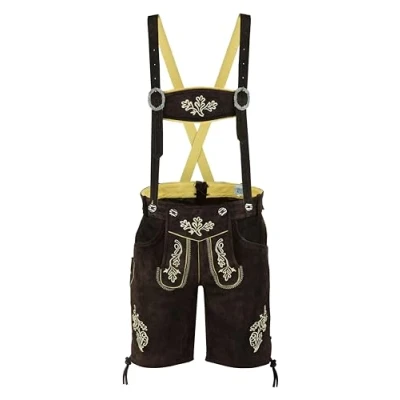 RIDEX Mens Bavarian Lederhosen Cowhide Brown Leather with Matching Suspenders Short (38W)