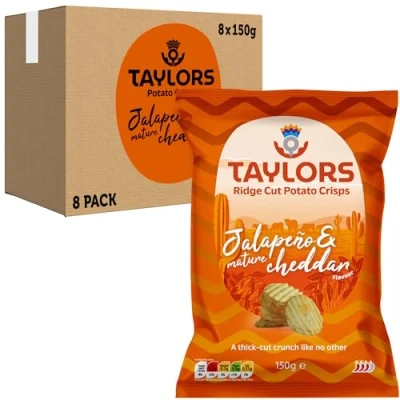 CHEESE AND CHILLI – Mature cheddar combines with tangy jalapeno for a bold, flavourful taste that excites the palate in every bite. Taylor's was formally known as Mackie's RIDGE CUT CRISPS – Thick-cut ridge design gives a robust crunch and ensures the crisps hold up well for dipping or sharing PERFECT FOR SHARING – Ideal for parties, picnics, or casual snacking, providing a convenient and delicious option for group enjoyment REAL POTATO QUALITY – Made from carefully cooked real potatoes, retaining authentic taste and texture for a premium snacking experience VERSATILE PAIRING – Pairs wonderfully with dips, sandwiches, or cheese boards, offering both bold flavour and versatility for multiple occasions