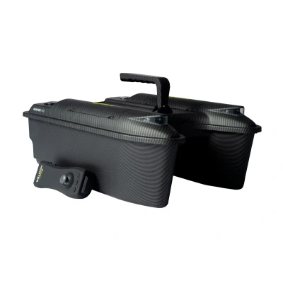 RidgeMonkey Hunter 750 Bait Boat - Compact bait boat - Weight: 2,5kg - Dimensions: 41 × 26.5 × 15.5cm - Bait capacity: 1kg - Cruising time (at maximum speed): up to 4 hours - Range: 200m - Built-in autopilot function, functions as cruise control - Compact aerodynamic design - Top-loading hopper for both rig and bait (industry first) - Ultra quiet twin motors - Built-in weed guards for the propeller - Front and rear lights - Battery power meter - Two 5,000mAh 30W Llithium-Polymer batteries included - Supplied with 30W type C PD plug and USB-C PD charging cable - Antenna-free - Easy-to-use remote control - Super boat! The Hunter 750 is a compact and lightweight bait boat weighing only 2.5kg. Ideal for those anglers who may want to use a bait boat, but normally don’t see the point in doing so because they have to walk a long way with their equipment. With its handy autopilot function it is able to sail on its own in the direction you determine, with all its comforts. It is the industry’s first ever bait boat that can be loaded completely from the top, thanks to the clever design of the bait release system. Fumbling with your rigs at the bottom of the boat is a thing of the past! The loading area can hold up to 1kg of bait. The built-in lights on the front and back make it easy to exit, drop and return to your spot in the dark. Thanks to a built-in, highly visible battery power meter, you always know how much power you have left. Two lithium polymer batteries are included as standard. Charging is easy via a USB-C cable with an average charge time of 2.5 hours per battery. The remote is also charged via USB-C, has an LED power meter and has been tested to a range of 200 meters. A great bait boat! Additional batteries and a carrying case can be ordered separately. Also check out the movie of this boat.