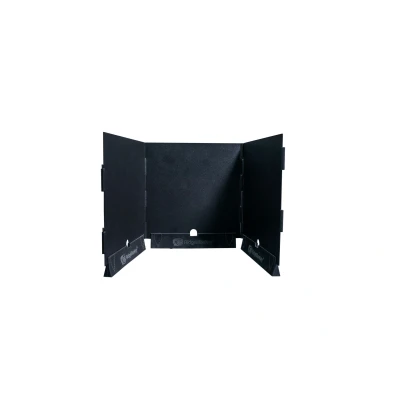 Ridgemonkey Quad Connect Windshield - Windshield for stove - Dimensions (open): 20cm(l) x 20cm(w) x 20cm(h) (+1.5cm legs). - Dimensions (folded): 20cm(l) x 21.5cm(w) x 1cm(h) - Weight: 900g - Black powder coated stainless steel panels - Contoured legs - Removable rubber feet - Compact Z-fold design - Endlessly linkable - Super stabile, Heavy Duty construction - Includes pouch with storage compartment for removable rubber feet The Ridgemonkey Quad Connect Windshield protects your stove from outside influences. Whether you want to prevent the wind from blowing out the flames, letting your food cool down too quickly or you just want to prevent anything from blowing away, the Quad Connect Windshield is the perfect solution! It is sturdily built and features contoured legs. As a result, it provides optimal protection in any situation. The compact Z-fold design allows the screen to fold and store completely flat in the included pouch. This windshield comes standard with two hinge points that make it easy to adjust it to any cooking setup. Also, the windshields are modular. This allows you to connect multiple screens together to protect even the largest cooking setups. Top product!