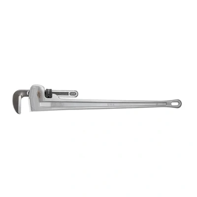Professional strength, lightweight Aluminium wrench is nearly 40% lighter than a same-size RIDGID heavy-duty model with the same durability and ease of use I-beam handle with full floating forged hook jaw for superior gripping and quick adjustments Features self-cleaning threads with easily replaceable hook jaw, heel jaw, and spring assembly Aluminium pipe wrench includes special hook and heel jaws for plastic coated pipe 48-inch (1200 mm) pipe wrenches are ideal for pipe diameters of 3 inch (80 mm) to 5 inch (125 mm) with a capacity of up to 6 inches (150 mm)