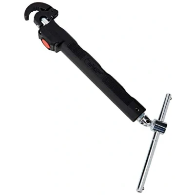 General description The RIDGID 2017 Telescopic Basin Wrench features an innovative design that simplifies working with tap fittings and retaining nuts. It includes a built-in, water-resistant LED light for direct illumination of your work area, equipped with an auto-shut off function to maximize battery life. The wrench also has a removable, 180° pivoting T-handle for easier access in tight spaces, and a 3/8in square drive connection for using a ratchet or breaker bar to enhance leverage and torque. Technical specifications Capacity: 12-32mm (1/2-1.1/4in) Length: 240-425mm (10-17in) fully extended Weight: 1.2kg (2.5lbs) Other information Ergonomic, contoured grip overmold handle for improved leverage and grip Effortless telescoping with a new body/button design