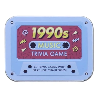 TRIVIA GAME – This 1990s Music Trivia set will put your nostalgic knowledge to the test! Do you have what it takes to be crowned the ultimate quiz champion? EASY TO PLAY – Divide into two teams and take turns asking the opposing team the question on the card. Then select a player to sing the line of the song to their team, who must correctly sing back the next line to earn another point! FUN FOR THE WHOLE FAMILY –Suitable for ages 8+, 2+ players, and with an average 15 minute gameplay, this quiz card game is perfect for social gatherings, parties, and family nights. INCLUDES – 40 trivia cards and instructions printed using FSC paper and soy inks. This product is plasticfree. Packaged in a keepsake embossed cassette inspired tin, this game will look great on your shelf., Manufacturer: Ridley’s
