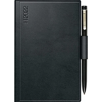 Pocket calendar 2022; sheet size 7.5 x 11.2 cm Division: 1 page = 2 days; contents: 312 pages Annual overview of previous year and following year; 6 pages monthly plan current year, 6 pages following year Special features: with corner perforation; with ballpoint pen; 32 pages of blank perforated notes; 16 pages of addresses with register cut; 2 pages of name days, 16 pages of maps, 21 pages worth knowing Plastic cover Skivertex black