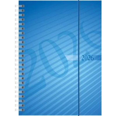 Sheet size: 148 x 208 mm 2 pages = 1 week, 160 pages, print colour calendar: grey/red, 80 g/m², wire-o binding PP cover, colour: blue, year overview current year and following year, 6 pages monthly plan current year, 6 pages following year, holiday dates Germany, 1 page notes lined, 16 pages blank, 11 pages worth knowing, 8 pages addresses Elasticated closure Half-hourly division from 7-20 o'clock, not Sat. and so on.