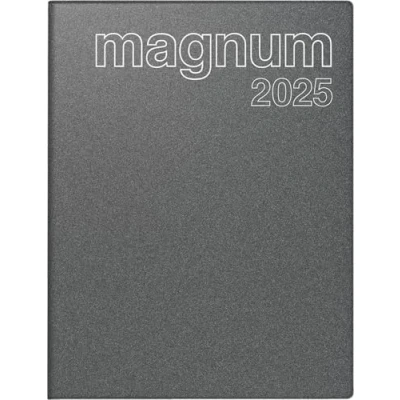 rido/idé Book Calendar Model Magnum (2025), 2 Pages = 1 Week, 183 x 240 mm, 144 Pages, Plastic Cover Reflection, Grey
