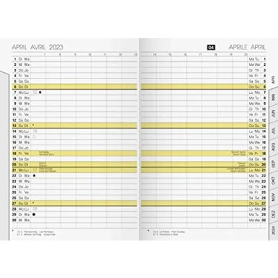 Cardboard envelope Yearly overview of current year and following year Four languages: German, French, Italian, English