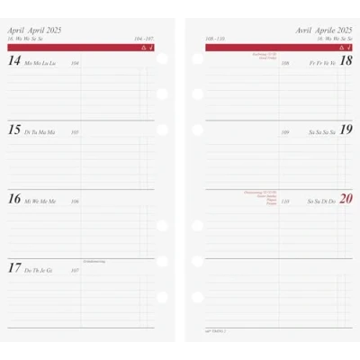 7066910005 (predecessor: 7066910004) 6-hole punching Four languages: German, English, French, Italian Annual overview current year and following year, additional annual plan current year, 3 parts, fold-out, monthly plan following year, 3 pages worth knowing