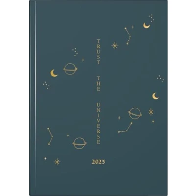 rido/idé Young Line (2025) "Universe" Book Calendar, 2 Pages = 1 Week, A5, 160 Pages, Graphic Cover, Dark Blue