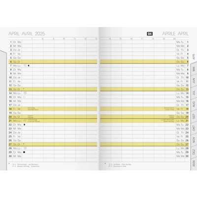 7048020005 (predecessor: 7048020004) Wire binding Cover: cardboard envelope, colour: white Calendar: December previous year to December current year Four languages: German, French, Italian, English