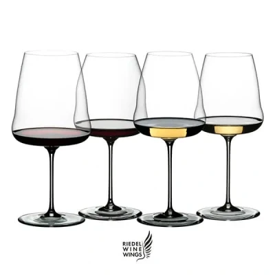 The Riedel Winewings Set of Four Tasting Glasses contains the following: 1 x Riedel Winewings Cabernet Sauvignon Glass, 1 x Riedel Winewings Pinot Noir/ Nebbiolo Glass, 1 x Riedel Winewings Sauvignon Blanc Glass and 1 x Riedel Winewings Chardonnay Glass.The Cabernet Sauvignon glass is perfect for full-bodied, complex red wines that are high in tannin.The Pinot Noir glass is perfect for light-bodied red wines with high acidity and moderate tannin.The Sauvignon Blanc glass is perfect for all styles of this variety, from the grassy, fruit-forward wines of the Marlborough to the oak-aged, honeyed blends from Bordeaux.The Chardonnay glass is perfect to reveal the intensity of full-bodied white wines, including the wine's multi-layered aromas.Riedel Winewings Cabernet Sauvignon Glass capacity: 820ml.Riedel Winewings Pinot Noir/ Nebbiolo Glass capacity: 950ml capacity.Riedel Winewings Sauvignon Blanc Glass capacity: 865ml.Part of the Riedel Winewings series.Dishwasher safe.Ideal for the true wine connoisseur, Riedel Winewings glasses emphasise the minerality of the wine, perfect for the wine drinker who prefers wines with depth and complexity.Riedel Winewings is a stunning collection by Georg Riedel. Georg’s swansong series is the culmination of 47 years working in the family business, designing products to enhance the enjoyment of beverages on the way to becoming the father of functional glassware. Asked by a customer in 2018 to create the ultimate glass for Cabernet Sauvignon, the following 12 months consisted of many tastings and changes to glass shape, size and rim diameter until Riedel Winewings literally took flight. Flat-bottomed and reminiscent of an aircraft wing, complete with winglets, Riedel Winewings is described by Georg as “brutally functional, taking the wine’s aromas and flavours on a flight.”Describing the reasoning behind this brutally functional design, Georg says “I chose a flat and stretched bottom with a wing-l ike shape as it increases the surface area of the wine exposed to oxygen. This leads to greater levels of evaporation and enables a greater intensity of aroma. When positioning one’s head to the glass, the nose is closer to the exposed and wider surface of the wine. This alone would not fully deliver the optimal aroma of each grape variety so, to capture the delicate layered aromas, it was necessary to curve the glass walls and to correctly calibrate the opening of each glass with its rim diameter.”