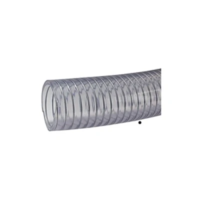 Transparent PVC, with embedded steel wire helix Temperature range: + 60 °C -15 °C up to Operating pressure: max. 10 bar for 20°C Vacuum: 0.9 bar