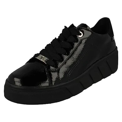 Rieker Ladies Evolution Soft Casual Lace Up Trainers W0501 00 Black Patent Leather UK Size 6 EU 39 US 8