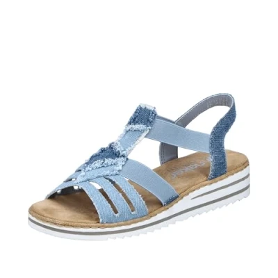 Rieker Women's V0678 Wedge Sandals, Blue, 8 UK
