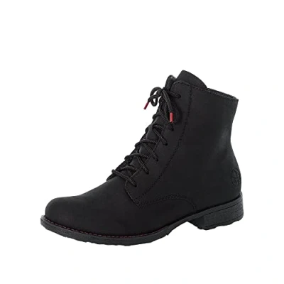 Rieker 70821 women's boots, lace-up boots, DA boots, combat boots, lacing, black/00 (black) Upper material: synthetic, inner material: velour lining, outsole: TR sole, insole: textile Heel type: flat. Heel height: 2.7 cm. Shaft type: mid-shaft. Shaft height: 12 cm Width: normal (F), closure: lace closure/zip, style: Ago/weave Boots, winter boots, transition boots, lace-up boots