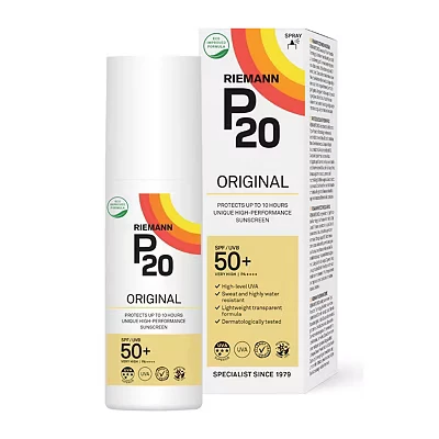 Riemann P20 Original SPF50 + Spray 85 ml, Advanced Sunscreen Protection, High Performance Triple Protection Sweat Resistance, Durable Protects Up to 10 Hours