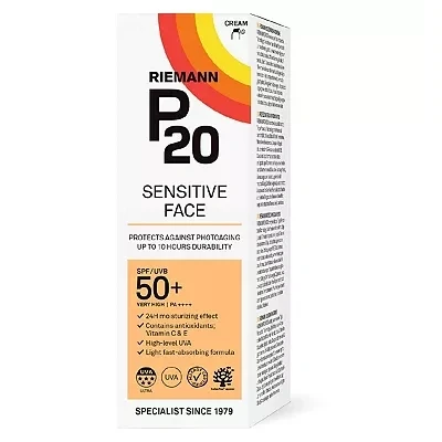RIEMANN P20 Sensitive Face SPF50+ UV Protection Cream, 50 Grams Non Greasy Highly Effective Protects from Radiation Sun Factor 50+ Wear under Make Up