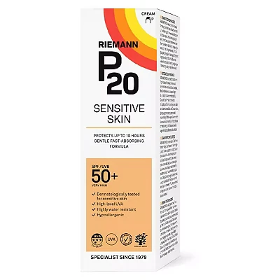 RIEMANN P20 SPF50 Sensitive Sun Cream 100 ml, Advanced Sunscreen Protection High Performance, Triple + Sweat Resistance, Durable Protects up to 10 Hours, Water Resistant
