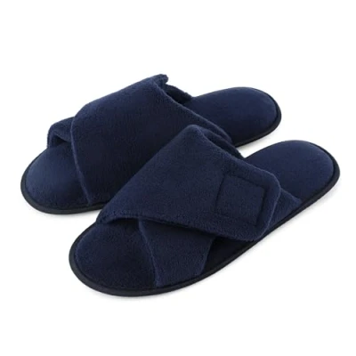riemot Mens Slipper Open Toe Adjustable Slippers Comfy Fluffy Memory Foam Diabetic Anti Skid House Shoes Navy UK 10/11