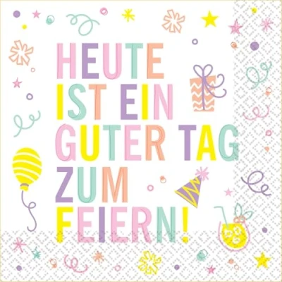 Riethmüller Napkins Heute ist EIN guter Tag Zum Feiern 33 cm x cm, Pack of 16 Large Paper with Saying for Birthday, Anniversary & Table Decoration