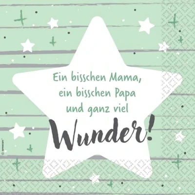 Riethmüller Serviettes EIN bisschen Papa, Mama 33 cm x cm, Pack of 16 Large Paper Napkins with Saying for Birthday and Christening Table Decoration