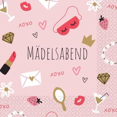 Riethmüller Serviettes Girls' Evening 33 cm x cm, Pack of 16 Large Paper Napkins with Saying for & Celebrations Table Decoration