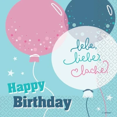 Riethmüller Serviettes Happy Birthday lebe, Liebe, Lache 33 cm x cm, Pack of 16 Large Paper Napkins with Saying for Table Decoration