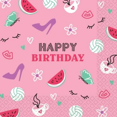 Riethmüller Serviettes Happy Birthday Pink, 33 cm x cm, Pack of 16 Large Paper Napkins with Saying for and Children's Table Decoration
