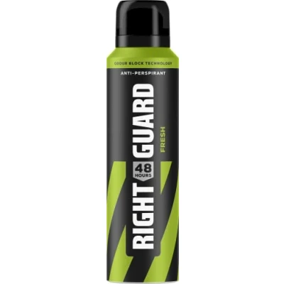 Right Guard Men's Deodorant Fresh, 48 Hour High Performance Anti Perspirant Aerosol Spray, No White Residue, Alcohol Free, Dermologically Tested 150ml