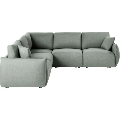 Sectional 5 Piece Couch with Cushions. This modular 5-seater corner sofa is a practical choice for living spaces that need flexibility and everyday comfort. Its clean form creates a modern look, while the modular design allows you to rearrange or expand the setup to suit your room layout. Discreet legs from synthetic material provide sturdy support, while fabric upholstery is easy to clean, making this piece perfect for everyday use. Details: Product Type: Modular Sofa General Color: Green, Black Material Type: Fabric Main Material: Fabric Additional Material: Eucalyptus Wood Filling Material: Foam Material Composition: 100% Polyester Shape: L-Shaped Arm Style: Track Orientation: Right Hand Pattern: Solid Seat Construction: Sinuous Springs Seat Foam Density: 24 kg/m3 Seats Up To: 5 People Dimensions: Armrests Height: 62 cm Depth: 268 cm Seat Thickness: 39 cm Seat Height: 44 cm Width: 268 cm Height: 84 cm Seating Surface: 268x60 cm Weight: 118 kg Weight Capacity per Person: 120 kg