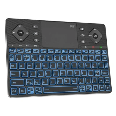 【Bluetooth 5.0 with Multi-Device Connection】Equipped with the latest Bluetooth 5.0 technology, this bluetooth keyboard allows you to connect up to three devices simultaneously. Effortlessly switch between your TV, tablet, and laptop with the press of a button. Perfect for multitasking across different platforms. The 10-meter operation distance ensures stable and reliable connectivity, giving you freedom to work or relax without being tethered.Also, please try to keep the Bluetooth connection within 10 meters to avoid disconnection,Simultaneously fully charged for use, The connection will be more stable 【Large Touchpad for Easy Navigation】The oversized touchpad offers precise and smooth navigation, making browsing websites, editing documents, or controlling media a breeze. Enjoy a mouse-free experience with full gesture control for added convenience.Please also pay attention to the compatibility of this product. If an incompatible device is connected, there may be delays in the touchpad, to avoid any negative user experience, Please confirm if your device is compatible before purchasing 【Comfortable and Functional Typing】Features ergonomic, quiet keys that are easy to read, ensuring a comfortable typing experience for extended use. Built-in multimedia shortcut keys and clear LED indicators simplify your workflow, whether you’re working, studying, or relaxing. 【Rechargeable with Smart Energy-Saving Features】With a built-in rechargeable battery, this wireless keyboard with trackpad offers long-lasting performance. The auto-sleep function activates after 10 minutes of inactivity, conserving energy and extending battery life, so you can work worry-free. 【11-Color LED Backlit Keyboard】Customize your keyboard lighting with 11 vibrant LED backlight options, perfect for low-light environments or enhancing your workspace aesthetics. Adjust brightness levels to suit your mood or needs this small wireless keyboard. 【Universal Compatibility for Multiple Devices】Compatible with TVs, projectors, tablets, iPads, computers, and smartphones, this bluetooth keyboard eliminates the need for multiple remote controls. Weighing only 324g, our Rii wireless keyboard is easy to carry and ideal for travel. Perfect for home, office, or travel use. System requirement: Windows 10,11; Android 8.0; Linux; iOS 14.3 and above.To avoid adaptation situations Please carefully check whether your device system meets the above requirements before purchasing 【Precautions】This is a small wireless keyboard,not a large-sized keyboard, Additionally, Bluetooth disconnection issues may be caused by model incompatibility and low battery life, please confirm whether your connected device system supports it, and then fully charge the keyboard to ensure stable Bluetooth connection,Please note: When the keyboard remains low battery, the red light will flash, and if the keyboard does not charge, it will immediately shut down