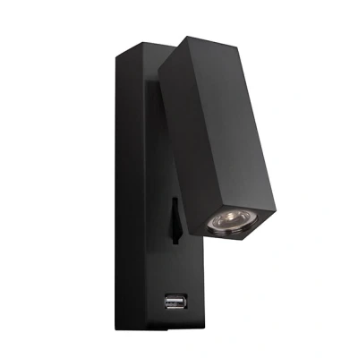 Rila Sconce Wall Lamp Black Matt Led Usb