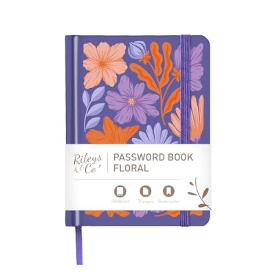 Rileys & Co. Password Book with Alphabetical Tabs, Keeper for Seniors, Purple Floral Notebook Internet Login, Website, Username (15.2 x 11.4 cm)