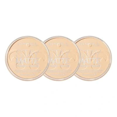 Rimmel Stay Matte Pressed Powder Transparent 3 Pack, Long Lasting Makeup, Natural Finish, Flawless Complexion, All Day Wear, Vegan, Trio Bundle 42g