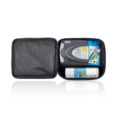 CONTENTS: Emergency Tyre Repair Kit - 12V air compressor, tyre pressure gauge, tread gauge, 400ml emergency puncture repair sealant, hair protective gloves, pair cleaning wipes all in a handy case REPAIR TYRES: Fix flats quickly with this Ring Automotive kit, ideal for emergency repair on the go FEATURES: Temporary solution for punctures up to 5mm in diameter. Reliable and easy to use CONVENIENT: Compact and lightweight, fits easily in your vehicle for peace of mind on the road ESSENTIAL: Every driver should have a flat tyre repair kit handy. Don't get caught unprepared! Suitable for use on all types of vehicles experiencing a flat tyre emergency