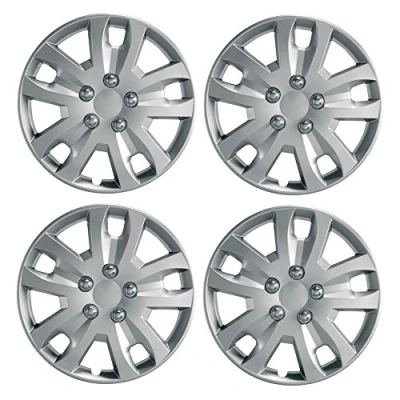 WHEEL APPEARANCE IMPROVEMENT: Covers marks and wear on wheels, helping the vehicle appear better maintained without changing the original wheels FINISH AND STYLE: Silver, high gloss finish gives a clean stylish appearance, ideal for refreshing and modernising the look of your car EVERYDAY WHEEL PROTECTION: Construction from impact resistant ABS helps protect your wheels and reduce visible damage from minor knocks and road debris, while rust resistance supports longer-lasting use in wet conditions FITTING METHOD: Adjustable retaining ring offers a snug fit that helps keep the trim secure while driving, allowing straightforward installation without tools or specialist knowledge SET CONTENTS: Supplied as a set of four 17 inch wheel trims to provide consistent coverage across all wheels, ensuring correct sizing and a coordinated finish