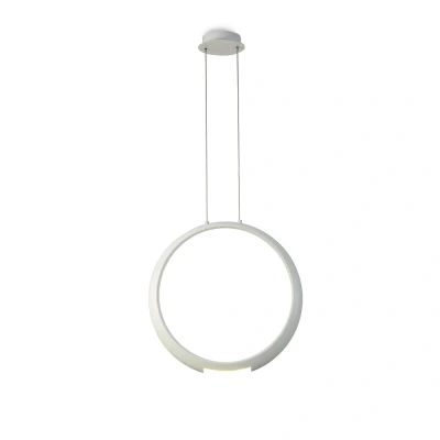 This is a clean and original concept that arises from the need to illuminate a direct space, creating an object of minimal expression in the form of an appealing and functional product. The design inspiration has be taken from a zen philosophy and its belief in the spirituality of simplicity and clear space. This collection utilises the ring shape as a form, the minimalistic sculptural frame where light is born, directing it to the space generated at the centre of its structure. The pendants are composed of aluminium injection, a material that provides a lightweight strength to safely house the high performance 3000K LED technology. Available in three colour finishes; bronze, silver and white, this generates a personal warm environment without losing efficiency and functionality.