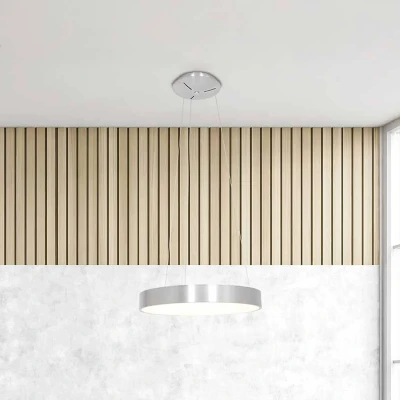 LED pendant luminaire Ringlede with ring-shaped shade element This modernly designed pendant luminaire is suitable for basic and area lighting, e.g. in the living/dining room or in the kitchen. The warm white LEDs are installed on the inside of the ring-shaped shade element and produce a high luminous flux as well as a very cosy light. - externally dimmable
