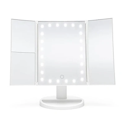 Rio 24 LED Tri Fold Makeup Mirror with Touch Dimmable Lights, 3X/2X Magnification, 3 Color Modes, Portable Dual Power Cosmetic Vanity for Home and Travel, Perfect Close up Beauty (White)