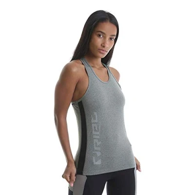 Ript Performance Women's Mesh Side Panel Running Sports Yoga Gym Training Racerback Breathable Grey Marl/Black, Medium, Tank Top Vest