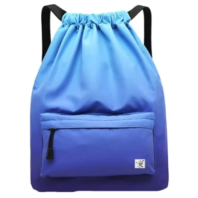 WATERPROOF DRAWSTRING BAG-- Double layer water-resistant fabric, help keep sack dry not afraid rainy day anymore. Made of durable and sturdy nylon materials, not easy to be scratched or torn. All your things inside will be protected very well. LARGER CAPACITY—Main sport backpack for hold clothing, shoes, slippers, towel, laptop, books, water bottle, daily supplies, etc. Front zipper bag and other small pockets give you perfect classification for small items like phone, keys, ID cards, makeups, wallets, etc. NOTE: color 65 series are smaller than other bags and don’t have front pocket. ADJUSTABLE WIDE SHOULDER STRAPS-- Super wide shoulder straps, adjustable and feels no bulky in wearing. Main compartment with draw cord closure for easy access. MULTIPLE USES—Drawstring bag are unisex and fit for multiple activities, such as gym, yoga, swimming, training, sports, beach, jogging, hiking, camping, picnic, travel, day trips, shopping, overnight stays sackpacks etc. Whether you're heading to the gym, going on a weekend getaway, or simply running errands, this bag is the perfect companion. STYLISH—Risefit Drawstring Backpack combines functionality with style. Its sleek design and versatile color options make it suitable for any occasion, adding a touch of fashion to your everyday look.